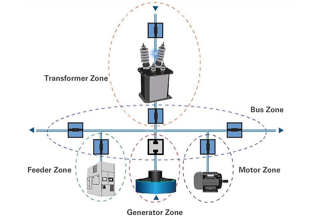 Protective relays in industrial and utility systems can be used to protect zones within the power system. These zones are usually based on functionality such as generators, motors, transformers, distribution feeders and buses, and transmission lines. When using protection relays, the overall system is divided into sections to provide “zones of protection” that define the system boundaries that the individual relays are required to protect.