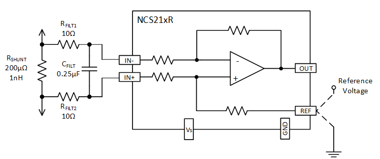Filtering at the input or output of a current sense amplifier may be required for several reasons. For example, current sense amplifiers use thin-film shunt resistors of 1 mΩ or less. Thin-film resistors below 1 mΩ can have a shunt inductance that causes transient spikes on the current sensing line and can overload the front end of the current sense amplifier.