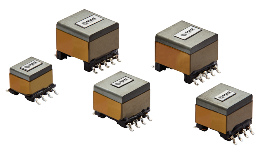 Signal’s SPoE Transformer Series, featuring Flyback topology, is well suited for design engineers seeking a solution optimized for high-density boards, as well as competitively priced for end products. Also, other key specifications include a 250 KHz operating switching frequency, input voltage range from 9V – 57V, Primary to Secondary isolation, 1500Vrms operational. Low leakage inductance, 8V, and 12V, 20mA Auxiliary windings are also excellent feature offerings to pair with control IC’s for power switching applications. There are five power levels (3, 7, 10, 13, and 27 watts) in three SMD platforms (EP7, EP10, and EP13) to choose from.
