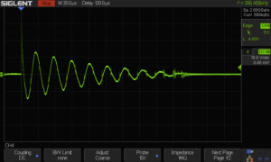 Waste pulse energy recovery – I wish (actually a client does) to recover the energy of some consecutive pulses and I have only come up two half-baked ideas so far, so let me know what you think. Below is the pulse given, measured over a restive load. The x-axis is time in nano-seconds.