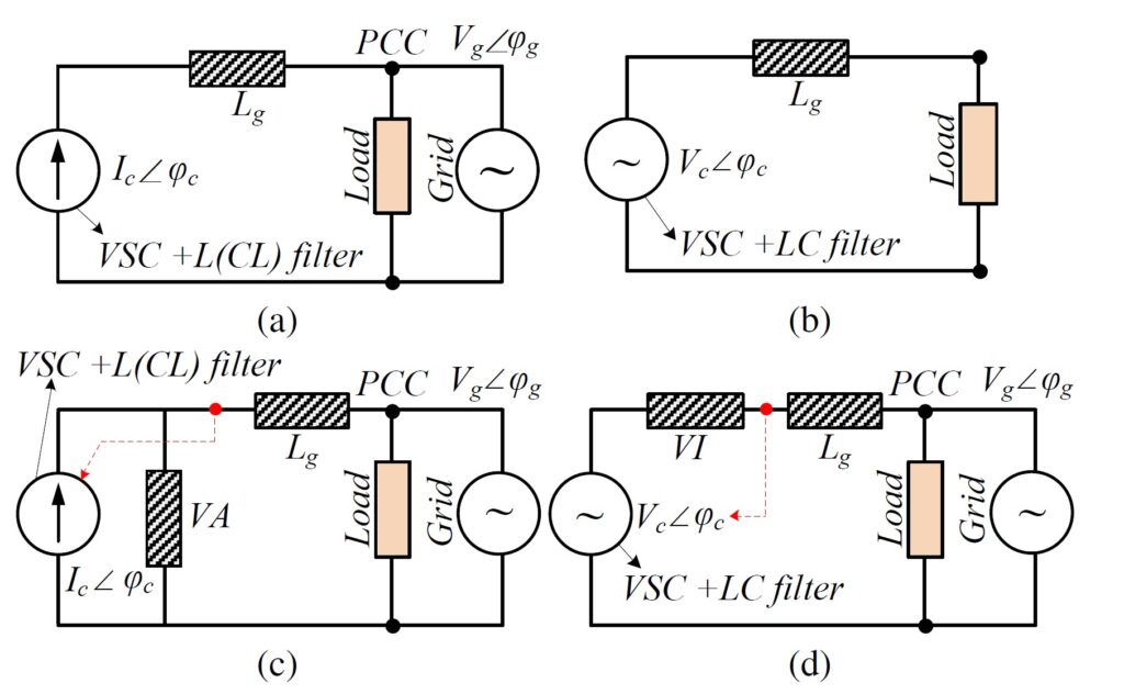 VSCs are used in EVs, microgrids, and similar applications. VSCs are used for three primary purposes in distributed generation and microgrids: grid forming, grid feeding, and grid supporting (Figure 3). Grid-forming inverters use a rigid voltage control, grid-feeding inverters use a rigid current or power control, and grid-supporting inverters use a flexible combination of voltage, current, and/or power control depending on microgrid conditions. In addition, grid-forming inverters define the grid and therefore don’t require grid synchronization, while grid-supporting and grid-feeding inverters require synchronization.