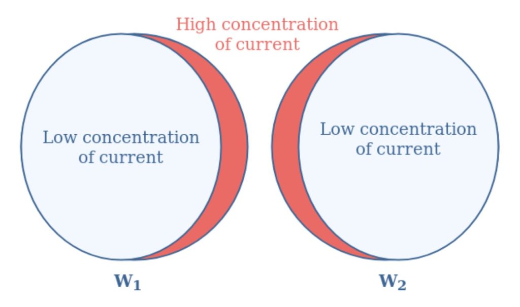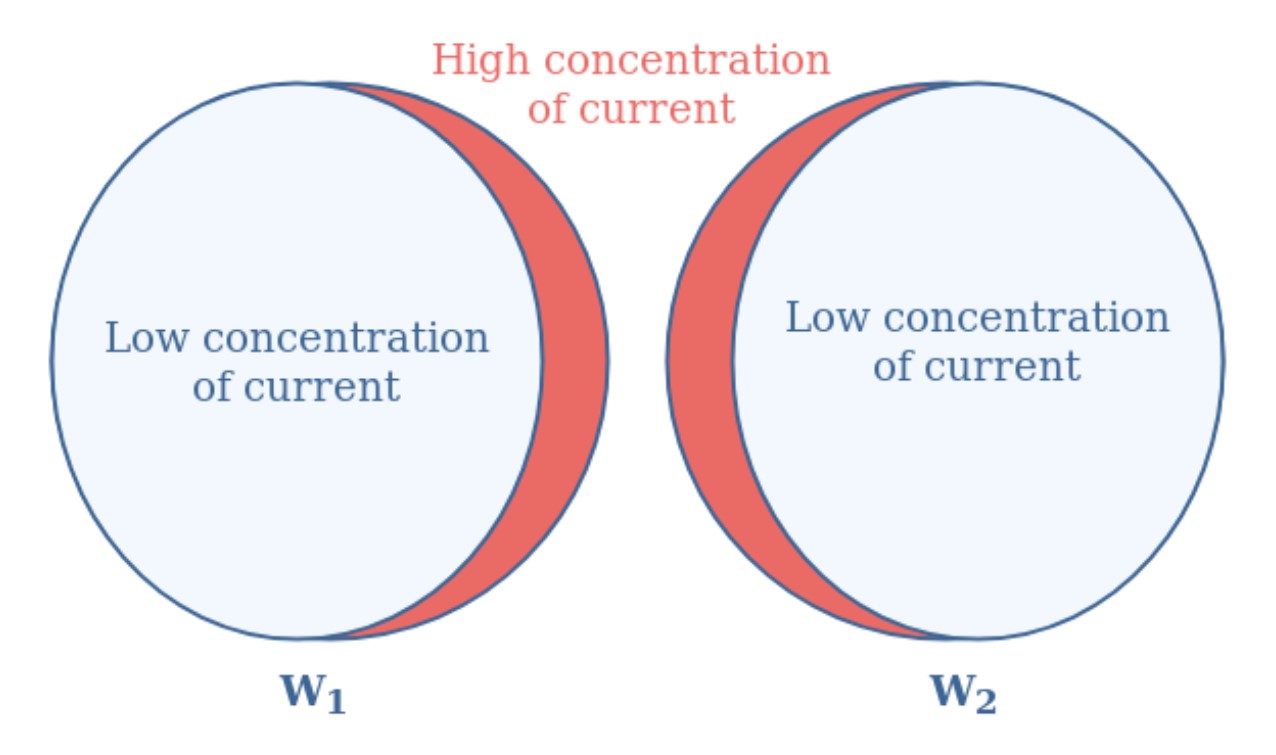 There are two forms of the proximity effect: Currents flowing in the same direction appear to “repel” each other (the direct proximity effect). Currents in the opposing directions are “attracted” together (the reverse proximity effect). Litz wire can be used to minimize the skin effect, and therefore also minimize the proximity effect.