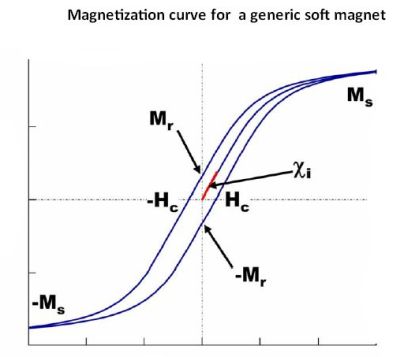 An easy way to introduce magnetic parameters is to start with the difference between hard magnetics and soft magnetics. Hard magnetics are permanent magnets. Two parameters distinguish these materials: Their coercive field, Hc, which is the strength of the magnetic field necessary to remove their magnetization; and Mr, which is the magnetization in the material that remains after its removed from an external field. For permanent magnets, Hc is huge (greater than 1,000 A/m) and so is Mr. These two properties are what allow permanent magnets to magnetize other materials.
