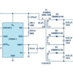 The Flyback topology is one of the lowest-cost means of generating power output up to about 150W, though some designs can support up to 250W (Figure 7). It can produce a higher or lower output voltage that can be positive or negative. A disadvantage is the high output ripple current. The “transformer” in a flyback converter comprises two coupled inductors. This topology transfers energy to the secondary side only when the primary switch is off.