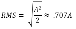 An ac voltage waveform oscillates above and below zero with an average value of zero. That is not a good measure of the effective voltage. The RMS value is used to derive the equivalent steady-state value. Using the amplitude (or peak value) format, the RMS value is calculated by squaring the peak amplitude, “A”, of the wave, dividing it by two to find the mean value, and then taking the square root of the resulting value. For a simple sine wave, the RMS value can be represented as 0.707*A.