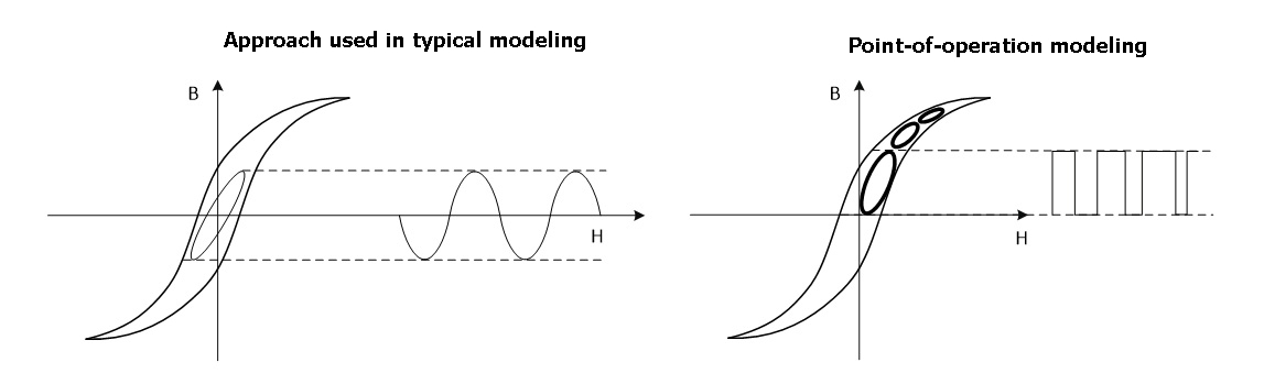 The minor loop area depends on the voltage above the inductor. Würth Elektronik’s ac loss model uses his minor loop in a point-of-operation approach to produce empirical model data. This approach has proven to be robust and accurate over a wide range of parameters like frequency, ripple current and duty cycle.