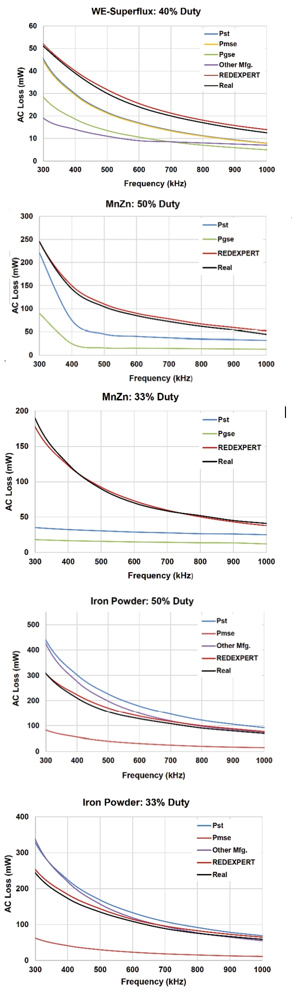 The Würth Elektronik’s ac loss model is accurate and practical. The model has been experimentally verified over a wide range of frequency, ripple currents and duty cycles and proved to be robust. This ac loss model is implemented in an online selection tool called Redexpert, eliminating the need for design engineers to request core loss charts.