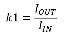 For a perfectly matched pair, the ratio between the selected values for R1 and R2 sets the value of k1. IOUT should also track IIN across the input current values required by design. However, slight differences in the physical characteristics of the BJTs can cause an unwanted deviation, thereby making it more difficult to precisely define the behavior of the application that the mirror circuit is biasing.
