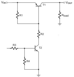 Switching regulators are widely used as power supplies, but linear regulation is still needed for applications to reduce electromagnetic interference (EMI) and voltage ripple. For example, when powering application-specific chips (ASICs), microcontrollers (MCU), application processors, and sensors. This is why linear regulators are often included after switching regulators in power supply blocks. Unlike switching regulators, the difference between input and output power is dissipated in a pass transistor such as a BJT, as shown in Figure 5. To minimize these power losses, linear regulators are mainly used in applications where the difference between input and output voltage is small or only small output currents are required. Figure 5 shows a basic linear regulator with feedback regulation where a PNP BJT drives the NPN pass transistor.