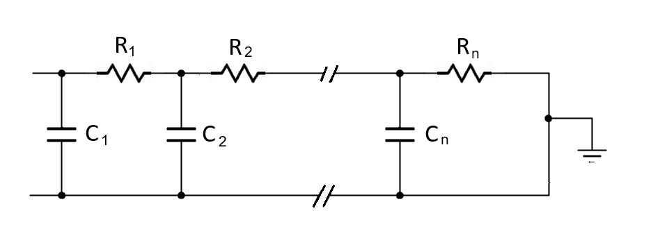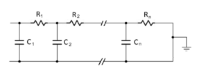 The RC network also represents a Cauer model, but unlike the Foster model, thermal capacitances are connected to thermal ground (ambient temperature location) as shown in Figure 8, and they also have physical meaning, which allows them to be used in determining the temperature of internal layers within a semiconductor structure. An advantage of using the Cauer model is that it will enable the addition of external components to the device model, such as the thermal models for PCBs, heatsinks, etc., which is impossible using a Foster model.