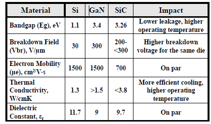 Q: Can you compare the key physics specifications of silicon, GaN, and SiC materials?
