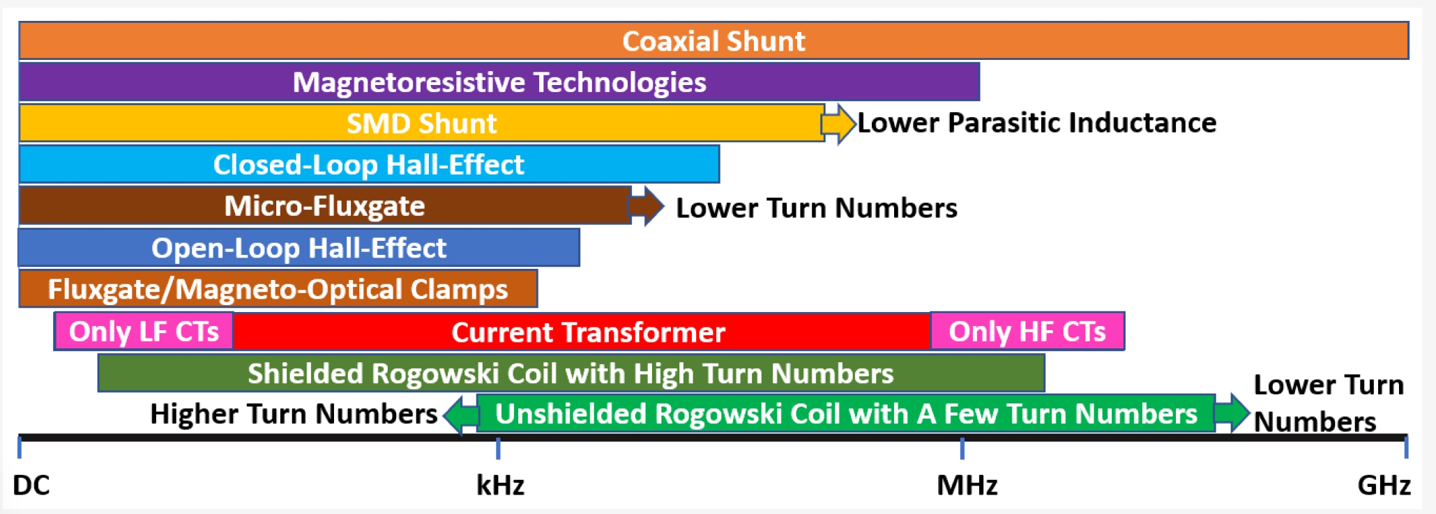 Most current sensing technologies struggle to reach tens of kHz bandwidths, and even high-bandwidth devices are generally limited to tens of MHz, which is not enough for many WBG applications (Figure 2).