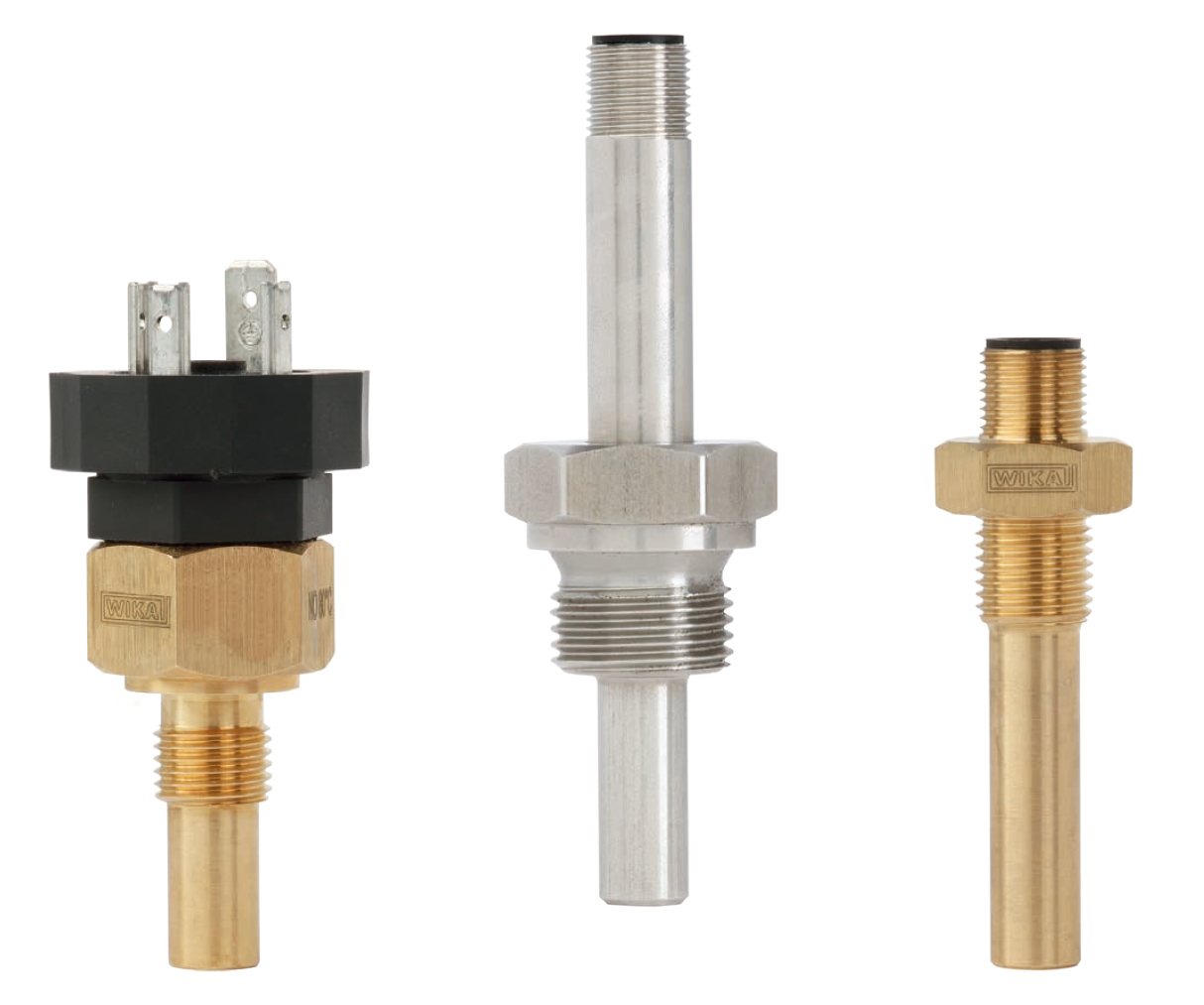 These industrial sensors are designed to protect compressors, pumps, and other machinery. They have a normally closed contact that opens when the temperature exceeds the preset level. When the temperature falls below the reset temperature, the contacts reclose. In addition, these temperature sensors are available with a second normally closed contact or with an internal Pt1000/Pt100 temperature measuring device (Figure 1).