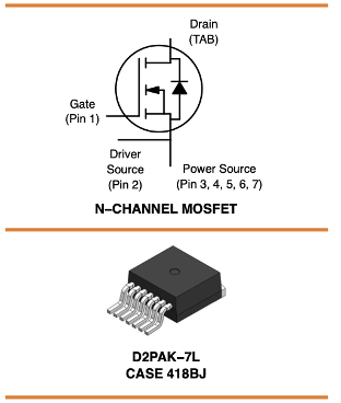 The robust device mitigates conduction losses with an excellent RDS(ON) value of just 28 mΩ (typ.), while an ultra-low gate charge (QG(tot)) of just 222 nC ensures low losses during high-frequency operation. The device is housed in a surface mountable D2PAK–7L package, which reduces parasitic effects during operation.