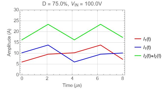 Sharing a common core for both phases reduces overall inductor volume by about 30% above and beyond what GaN can achieve on its own. Figure 2 shows the current waveforms for the two windings of the coupled inductor shown in Figure 1. The switching frequency of each phase is 120kHz; however, because of coupling, the ripple current in each phase is 240kHz. The objective of the design is to choose inductances L1/L2 and M so that the root-mean-square (RMS) currents in the windings are as small as possible. Additionally, since physical size is roughly proportional to the inductance, you also want the inductance to be small.