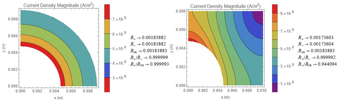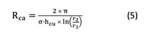 where is the conductivity of copper, is the copper layer thickness, r1 is the inner radius of the arc, and r2 is the outer radius of the arc.