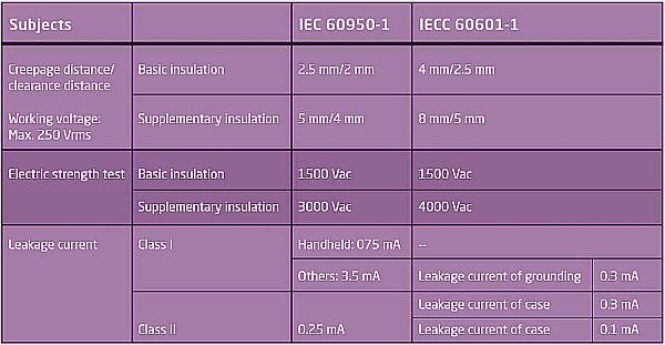 Special considerations apply for power supplies when even small electrical currents pose a shock hazard.