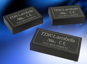 The PXG-M and PXD-M30 series have industry standard package sizes, with overall dimensions of 40.6×25.4×10.2 mm (1.6x1x0.4 in) and 50.8×25.4×10.2 mm (2x1x0.4 in) respectively. 5 V, 12 V, 15 V and 24 V single and ±5 V, ±12 V and ±15 V dual outputs are available in all three power levels. The single output models have an output adjustment function using a trim pin.