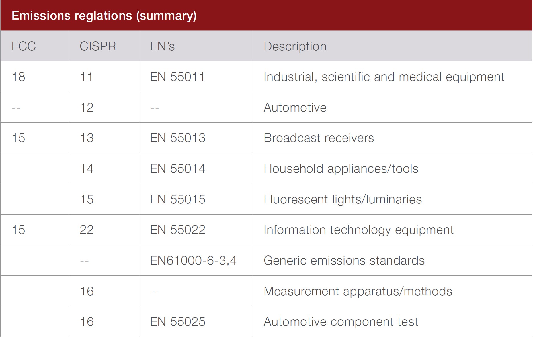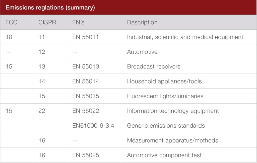 Some common EMI and EMC standards include: