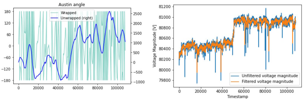 In addition, there can be spikes in unfiltered phasor measurements that may be caused by load changes or other phenomena and don’t reflect any anomalous conditions on the grid itself. As a result, before phasor data can be used in AI or ML algorithms, it must be unwrapped and filtered (Figure 3). AI and ML can used in the tools for unwrapping and filtering the data.