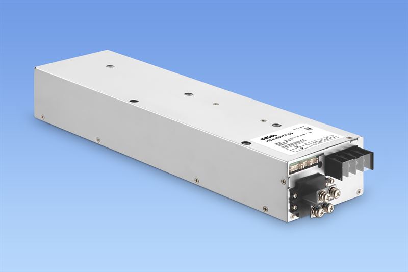 COSEL Co, Ltd announced the launch of the HCA3500TF, a fanless 3-phase / 3-wire 3500W AC/DC enclosed power supply, designed and optimized for industrial equipment such as high-frequency amplifiers, laser processing machines, and robotics. Addressing worldwide applications and 3-Phase Delta or 3-Phase Star networks, the HCA3500TF input voltage covers a wide operating range of 180VAC to 528VAC. Using the latest energy-optimized, digitally controlled switching topology and Wide Band Bap (WBG) semiconductors, the power supply offers an impressive efficiency figure of up to 94% at 400VAC. The HCA3500TF is available in two output voltages, 48VDC, and 65VDC, these being adjustable in a range of +15%/-50% using the Trim function. The compact, low profile design comes in at 65mm complete with cover (1.5U) and includes an aluminum plate assisting conduction cooling to the dissipating element e.g., a cold wall or water-cooled baseplate. For higher power applications the HCA3500TF can be connected in parallel up to 10 units and to deliver up to 31.5kW.