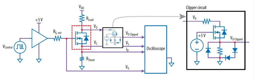 Testing for dynamic RON is done by applying the maximum-rated DC VDS at the maximum-rated temperature. If there are no failures after 1,000 hours, the device is good. Applying DC VDS at maximum temperature, the available electrons come from the drain-source leakage current, IDSS. To accelerate trapping, voltages above the rated maximum are required. By using the hard switching circuit included in JEDEC JEP17, orders of magnitude more potential trapping electrons can be generated, independent of temperature (Figure 3).
