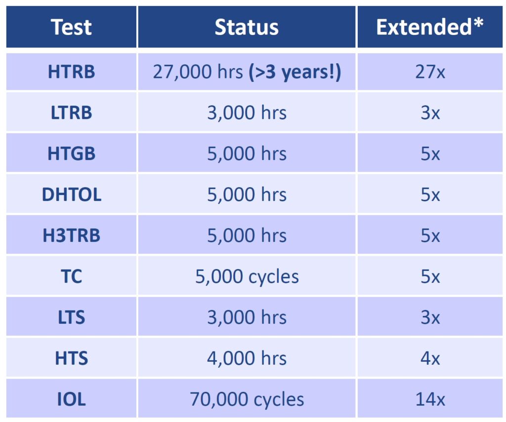 GaN-specific reliability validation is not a mature area of power electronics engineering. As a result, several suppliers of GaN HEMTs and GaN power ICs have partnered with power converter makers and users to develop qualification methodologies that parallel and expand on JEDEC and AEC-Q100. In most instances, that has resulted in establishing testing durations in excess of those called for in the standard reliability testing standards (Figure 5).
