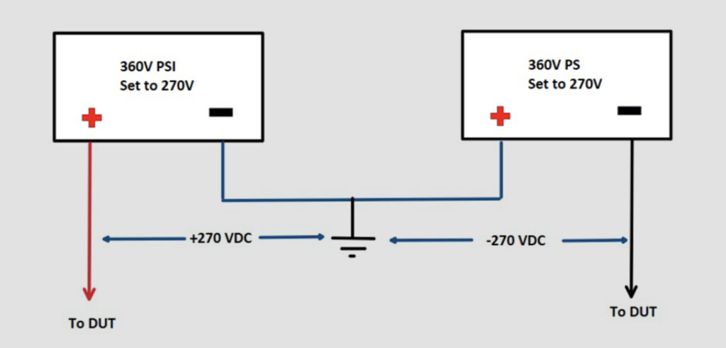 Before embarking on a project, ensure the power supplies have similar ratings before connecting them in series. Two similar power supplies must be connected in series to generate 800 V supply out of 400 V units (Figure 1). 500 V units come closest to 400 V required, such as a programmable bidirectional DC power supply, and its output can be set to 400 V, as shown in Figure 1.