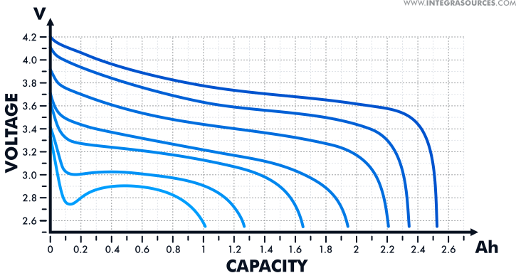 Despite high accuracy, this method isn’t widely used in practice as one has to shut off the power completely and let the battery rest for up to several hours before measuring its SOC. So, unless the power consumption of your battery-powered system is negligibly low, using this technique to measure a battery’s SOC while in operation is impossible. Besides, it doesn’t suit Li-ion batteries since their discharge curve is relatively flat.