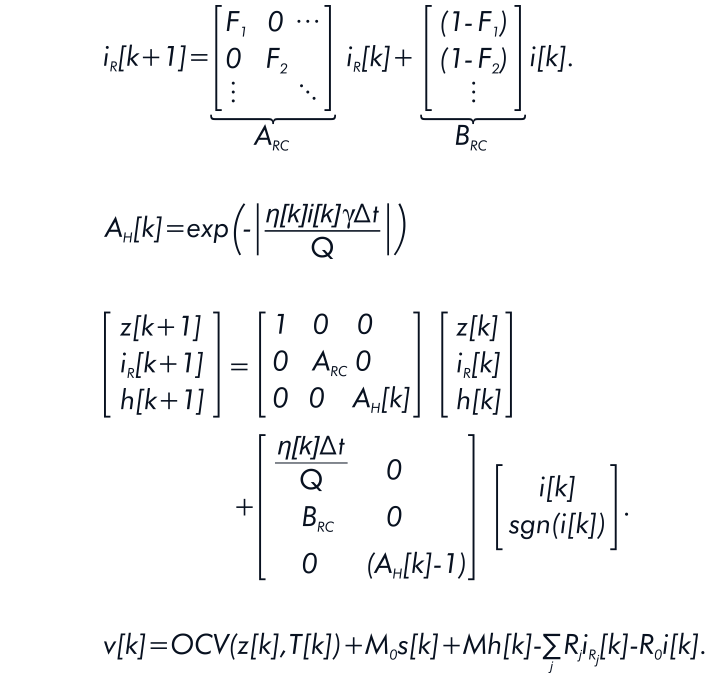 - x = SOC (capacity + OCV + internal resistance + hysteresis + other values);
